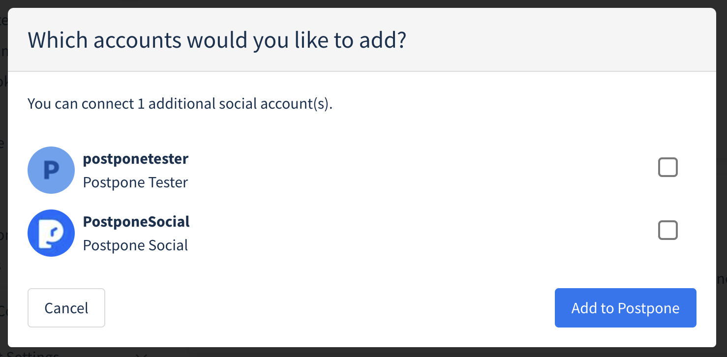 If your Facebook account has access to multiple Pages then you'll be asked to select which ones you'd like to add to Postpone.