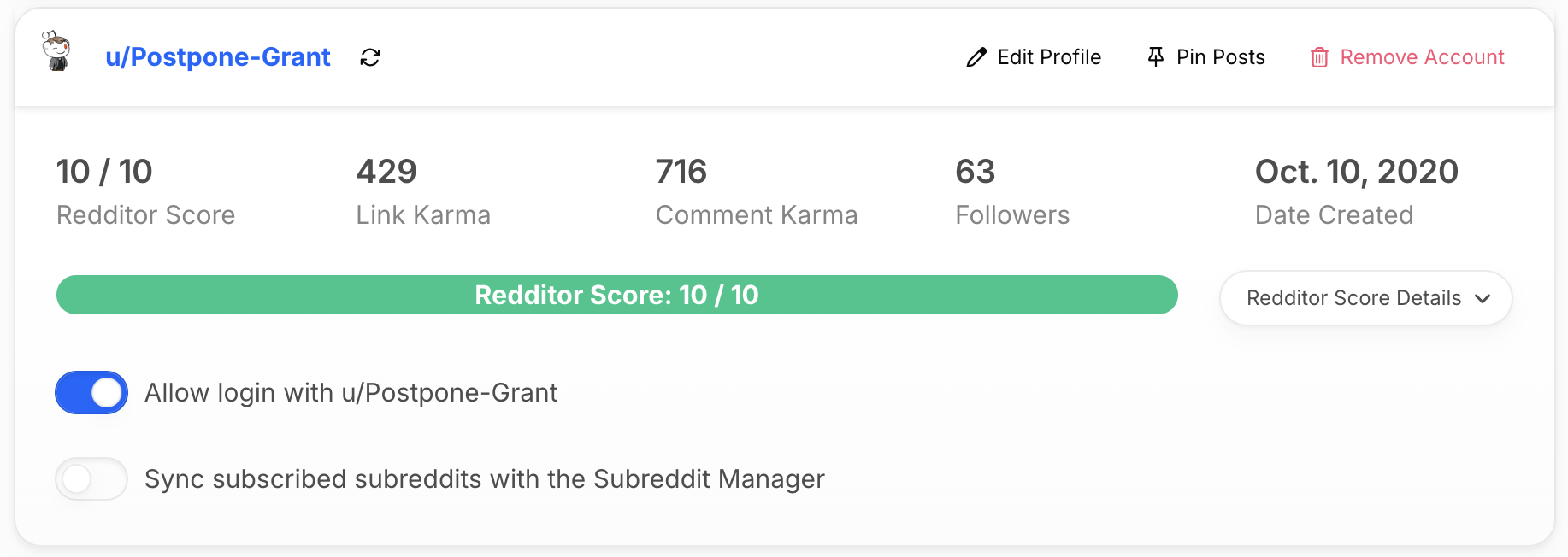 Note: Only Postpone account owners can remove Reddit accounts. Invited users cannot remove Reddit accounts.